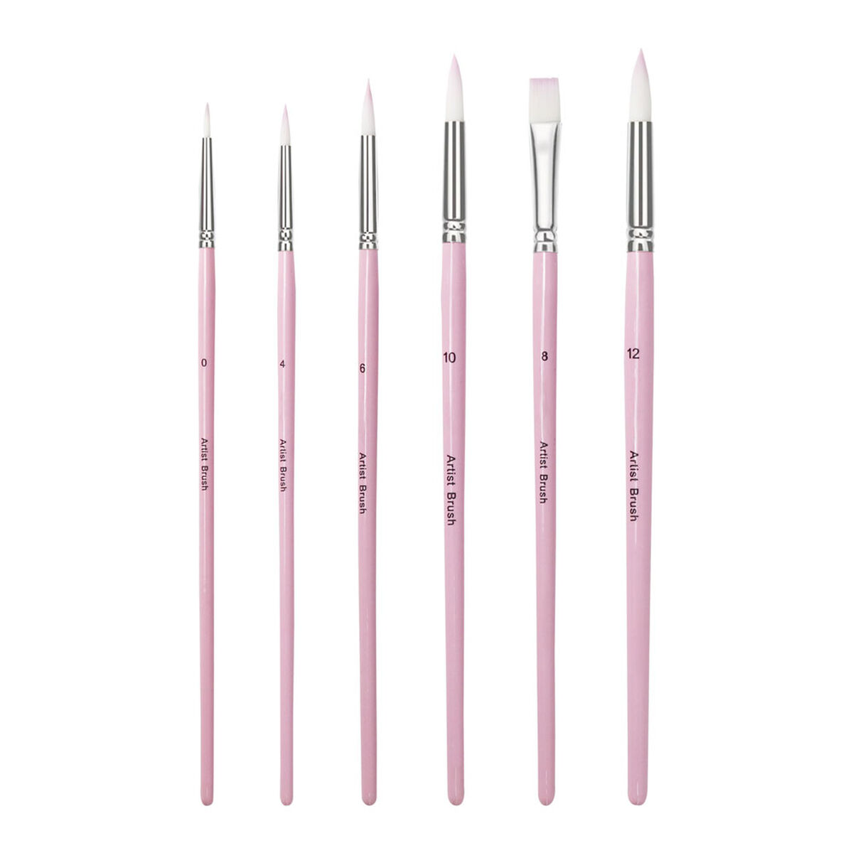 Grab this Artist Paint Brushes for Paint by Numbers and take your painting journey to the next level. This set of paint-by-number brushes offers six high-quality tools for precise artwork. Each brush has a pink handle with clear size markings (0, 6, 4, 10, 8, 12).
