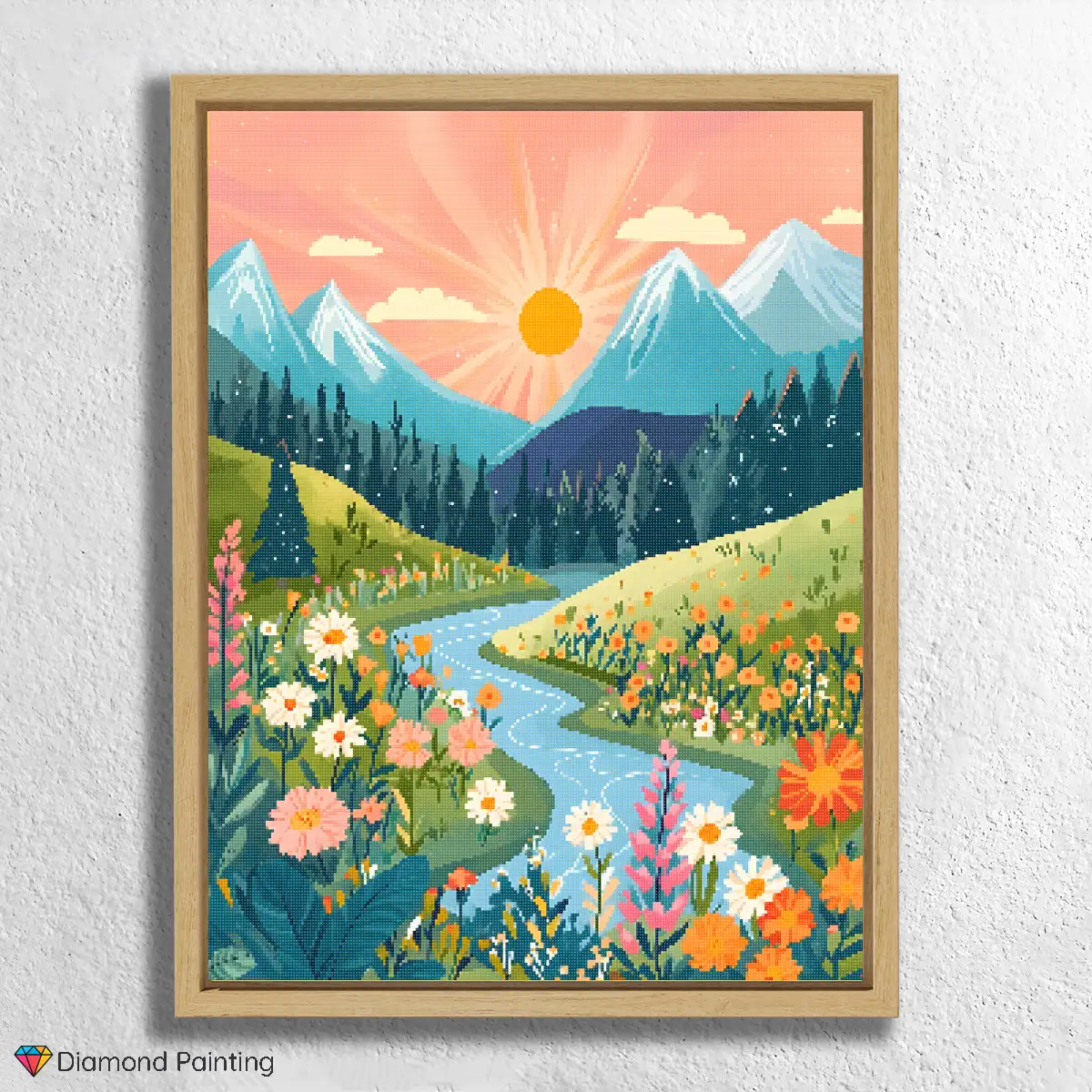 Create a sparkling panorama that soothes the soul and fosters an atmosphere of grandeur and clarity. This high-quality Diamond Painting Set offers not only a wonderfully relaxing and creative break but also a breathtaking result that you can proudly display in your home. Whether as an impressive focal point in your living room, an inspiring addition to your collection, or as a perfect gift for hikers, adventurers, and nature lovers – this Diamond Painting kit is a fabulous way to capture the beauty of a river in the mountains in a shimmering masterpiece and fill your walls with natural majesty.