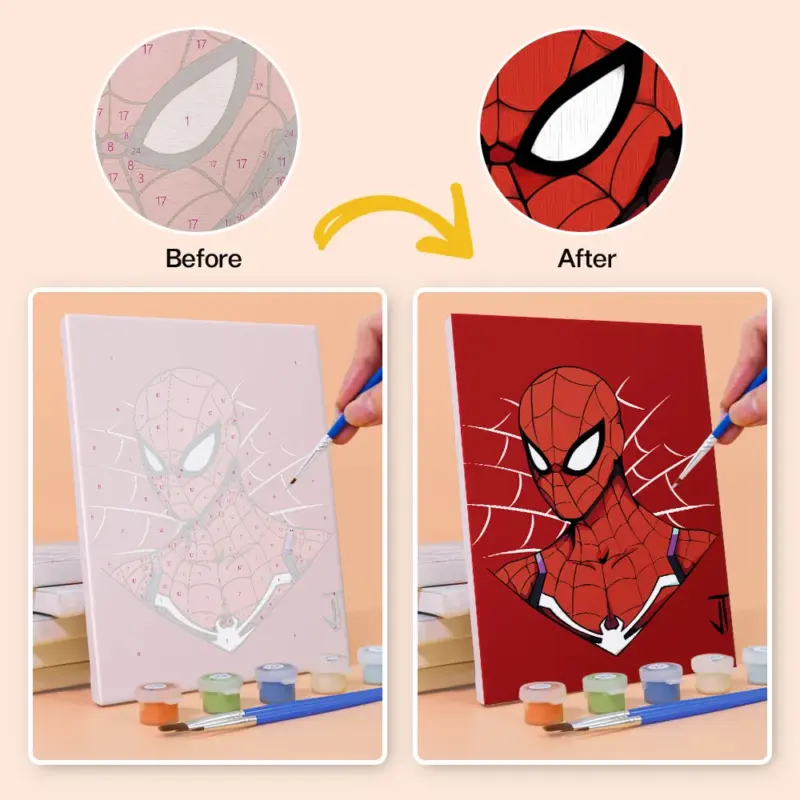 The “Amazing Spiderman” Mini Paint by Numbers set brings action, color, and superhero flair directly to your canvas. The dynamic motif shows the famous web-slinger in an iconic pose – perfect for Marvel fans of all ages. Ideal as a creative gift, for kids’ room decoration, or exciting painting afternoons. With a pre-printed mini canvas, vibrant acrylic paints, and a brush, the superhero adventure comes to life – easy even for beginners.