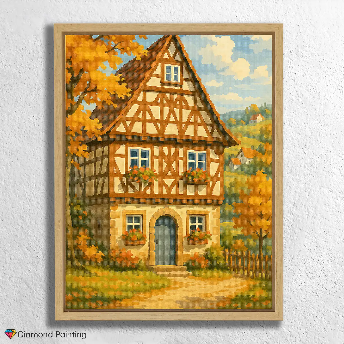 Bring the picturesque romance of country life into your home with our enchanting Diamond Painting “Autumn Village with Half-Timbered Houses”! This idyllic motif captures the timeless beauty of a charming village, where traditional half-timbered houses stand amidst the warm, glowing colors of autumn. Every sparkling stone helps you bring to life the rustic details of the houses, the golden tree crowns, and the peaceful, inviting atmosphere of the rural landscape. It’s a tribute to coziness, to the simple beauty of nature, and to the nostalgia evoked by such traditional scenes. An ideal Diamond Painting for anyone who loves country life, yearns for peace, and wants to bring a touch of rural magic into their home.