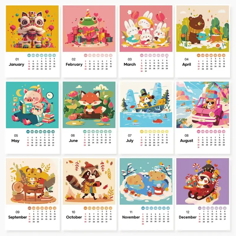 Calendar 2025 with cute characters