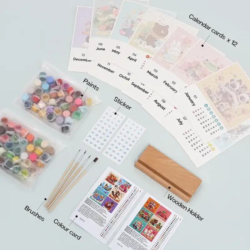 You will get all the accessories required to complete your paint by numbers calendar. You will get the following tools and accessories –