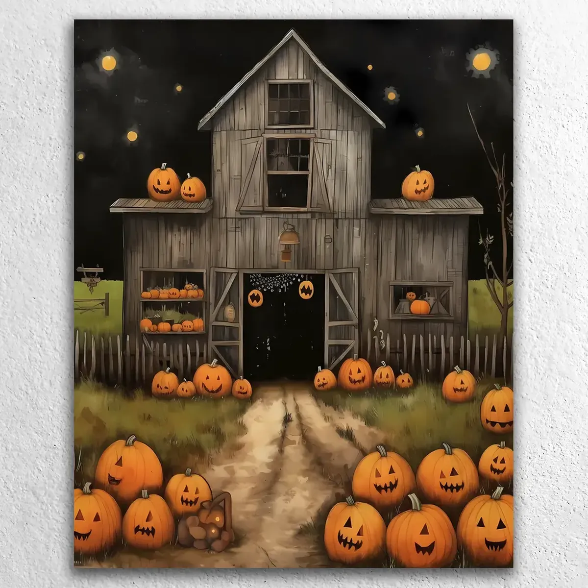 This stunning artwork is available as a premium canvas print, perfect for adding a touch of rustic elegance and warmth to your decor. For a mindful and rewarding creative escape, choose the paint by numbers kit for adults. This all-inclusive kit contains a high-quality pre-printed numbered canvas, a rich palette of acrylic paints, and a full set of artist’s brushes to capture every detail, from the vibrant fruit to the weathered wood of the farmhouse.