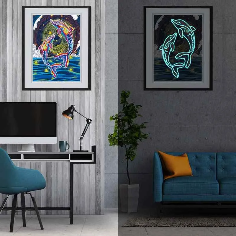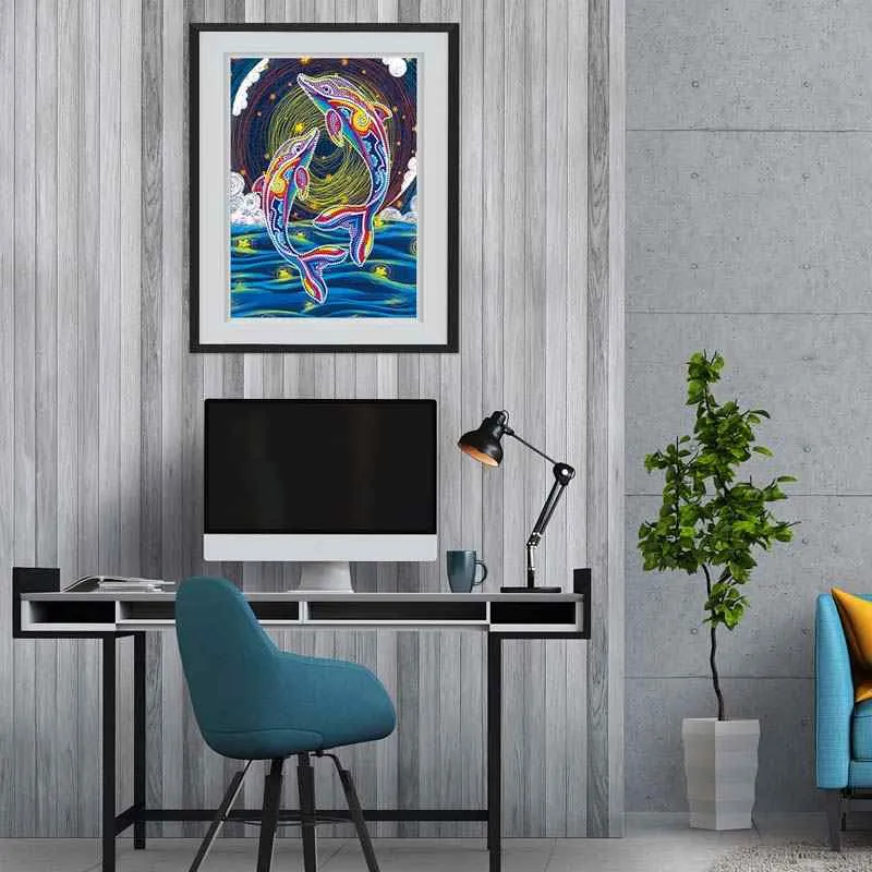Immerse yourself in the deep blue expanse of the ocean with our ‘Ocean Giant’ Diamond Painting! This design captures the impressive yet gentle nature of a playing whale, majestically gliding through the water. Surrounded by smaller sea creatures and light reflections, this image radiates a deep tranquility and the endless freedom of the sea. Every sparkling diamond helps you bring the magnificent form of the whale and the vibrant blue tones of the water to life.