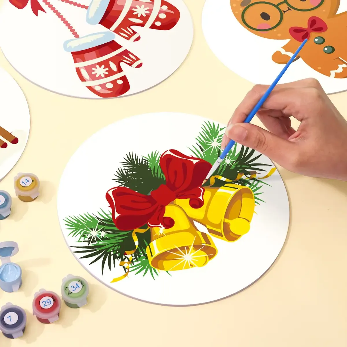 You can quickly complete your Ringing Bells Christmas Placemats with paint by number project using the following steps.