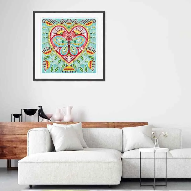 Capture the magic of love and transformation in a single artwork! Our ‘Soul Butterfly’ Diamond Painting combines the timeless symbolism of a heart with the delicate beauty of a butterfly. During the day, the motif unfolds its full vibrant colors. But at night, the picture awakens to a mysterious life: special luminous stones, placed in the butterfly’s wings and the heart’s contours, begin to softly glimmer, creating an enchanting atmosphere.